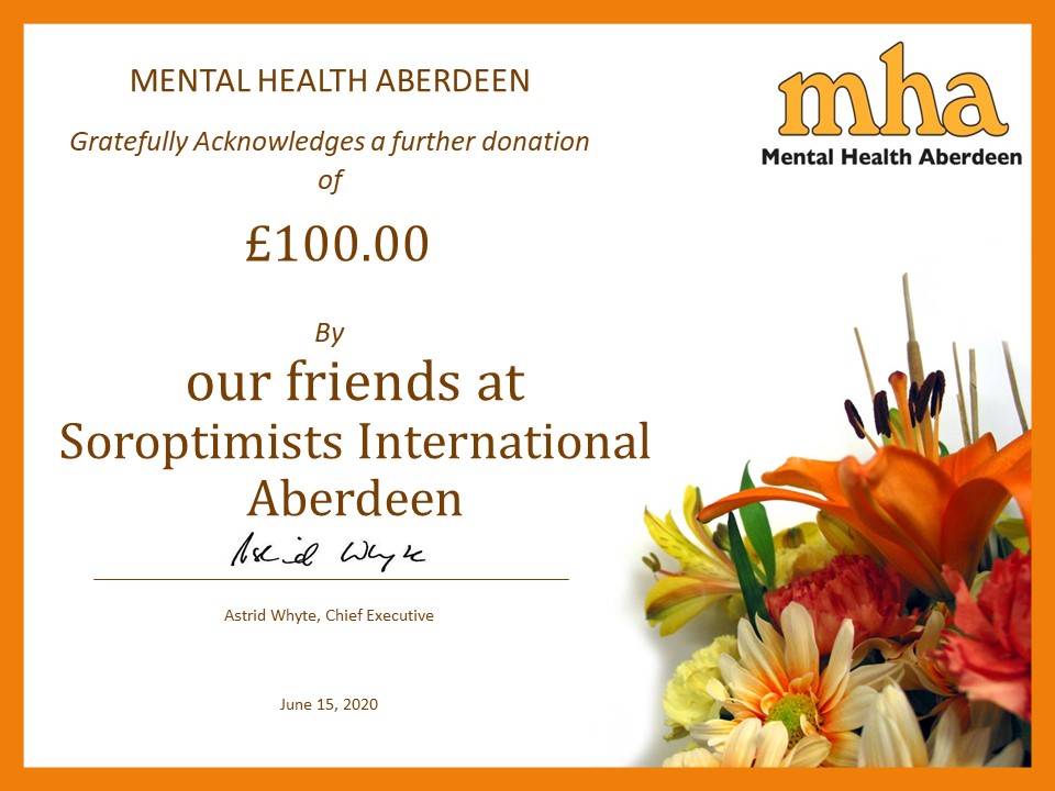 Aberdeen Soroptimists at this difficult time are supporting 4 local charities.