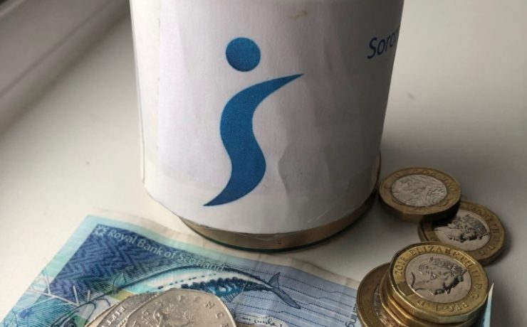 Fundraising continues despite restrictions The “Giving Jar” Pat handing over cheque to Grampian Women’s Aid