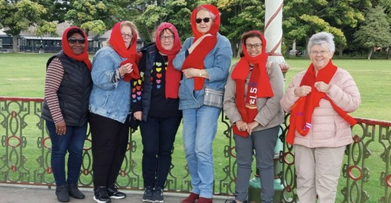 Over the last few weeks club members have been very busy, successfully knitting several ‘Thin Red Line’ scarves as part of our campaign to highlight the impact of climate change, modelling the scarves in the bandstand of our local Duthie park. Scottish club members are being encouraged to contact their MPs to remind them of the importance of enacting policies in line with the Paris Climate Agreement and are also being urged to display their scarves in their towns and gift the scarves to their MPs! Club members have also recently spent a week supporting the local charity ‘Aberdeen Cyrenians’ in the Aberdeen City Council charity shop. Volunteers ran the busy shop throughout one week and were thanked for all their efforts. http://www,weareac.org Members will gather together this week at our Orange Cafe to promote our club and will be delighted to chat to anyone