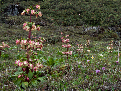 Tim Lever, who has travelled the world searching for specialist alpine plants, gave a fascinating talk on his journey walking in the mountains of the Arunachal Pradesh in the monsoon season.  The beautiful presentation included photos of the lush verdant forests and leech infested undergrowth that was journeyed through, high above the cloud base on occassions, to discover a plethora of different plants. Stunning magnoloas, lillies, primulas, saxifrages and ferns were shown along with some the local wildlife including yaks!