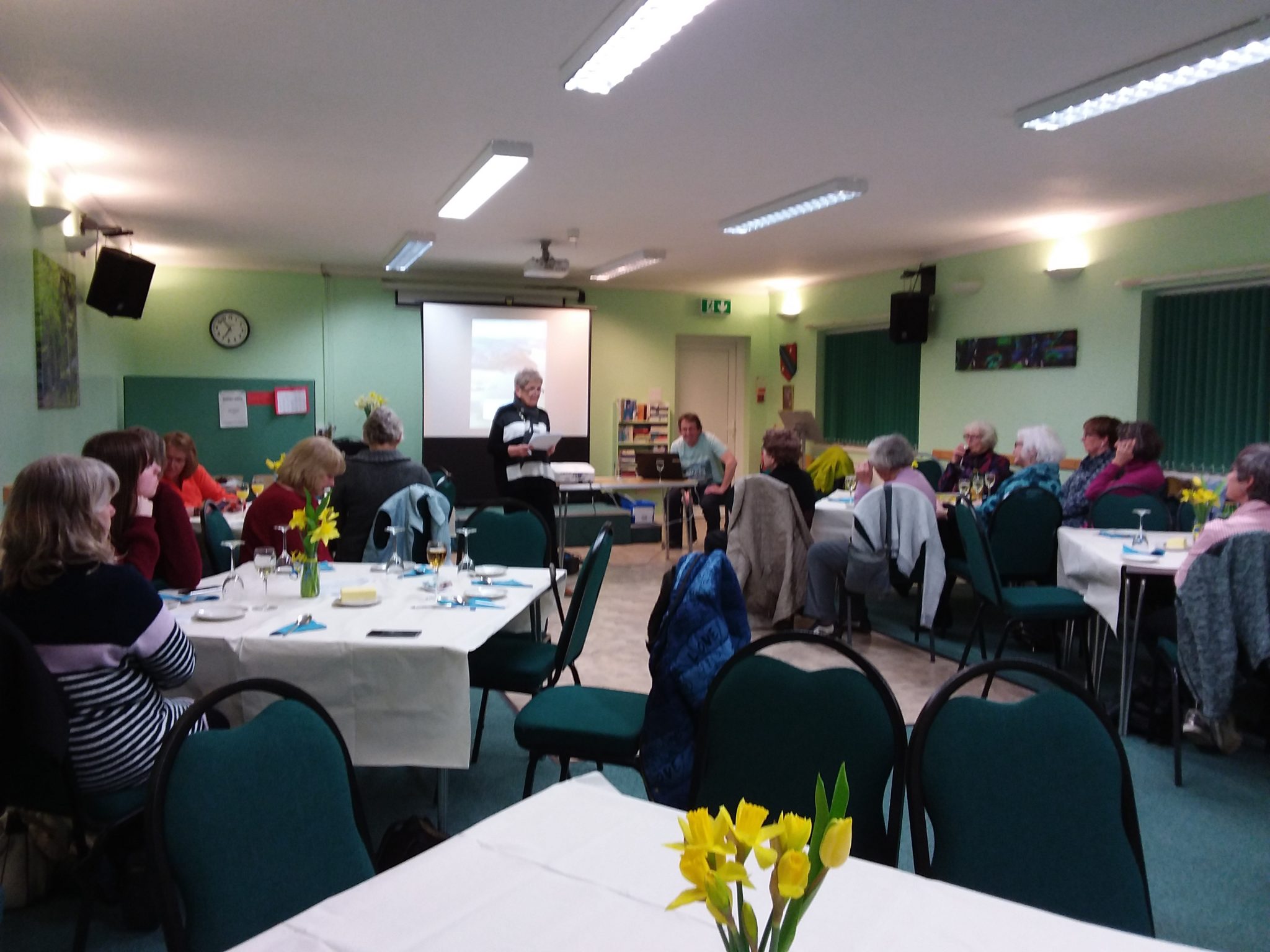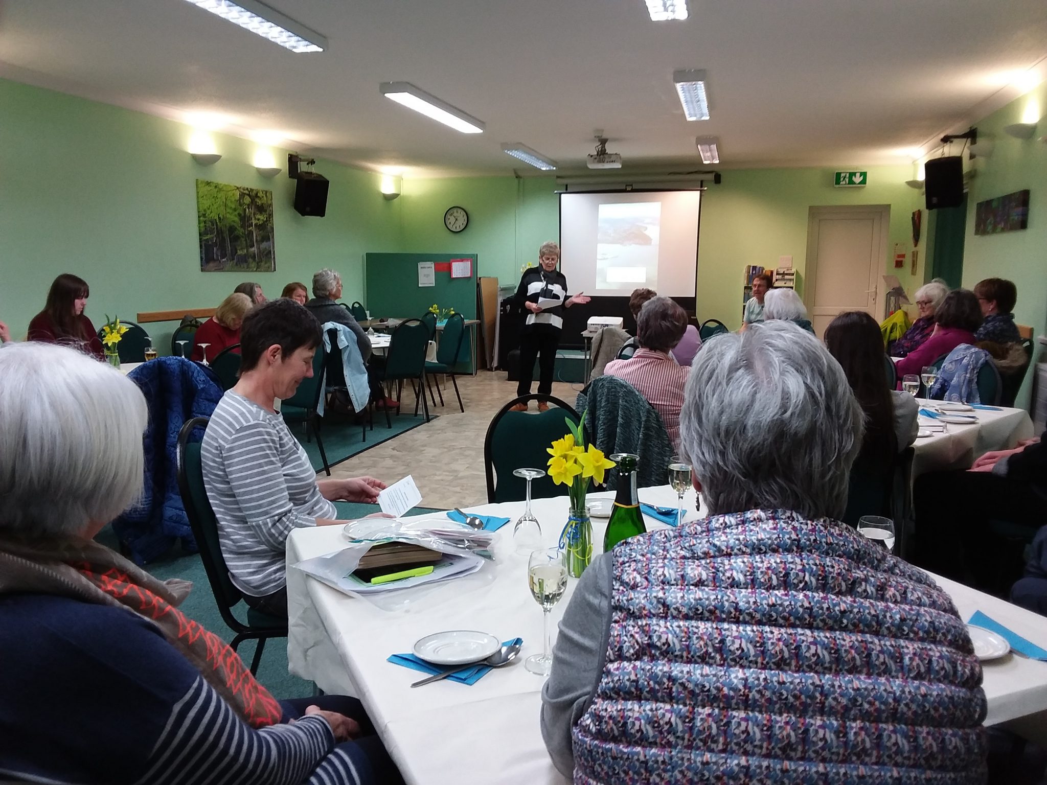 Gareth Roberts of Menter Fachwen provided a humorous and informative talk on the history of Bangor, from Neolithic period to medieval times, Roman and druid places to wartime bomb sites…. all was captivating! Whilst the plan had been to walk along the high street, Gareth shared instead a PowerPoint presentation inside Hirael Community Hall whilst the rain came down. He also shared the new walking guide which focussed on Bangor’s Jewish community and history. Warm soup, crusty bread and freshly made Welsh cakes were enjoyed by all, including members of SI Anglesey club who joined for the evening. Soup was later taken to the local homeless shelter