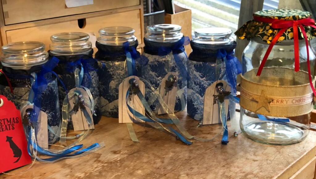 A number of different items were created including Doggy Treat jars, Cotton Wool jars, button Christmas tree decorations, crystal dropper tree decorations