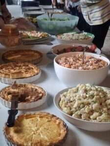Thank you to Eirwen, additional lunch contributors and also your industrious helpers who provided a relaxing afternoon and delicious lunch which you fabulously and generously hosted.