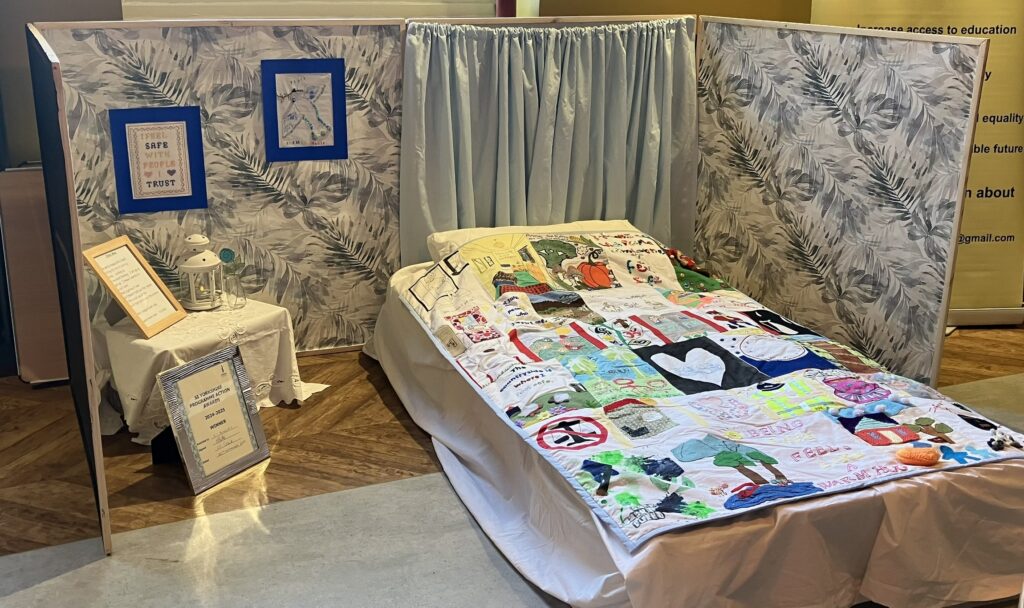 As part of Bingley Creates, S I Bingley’s quilt highlighting safety was displayed at Damart.