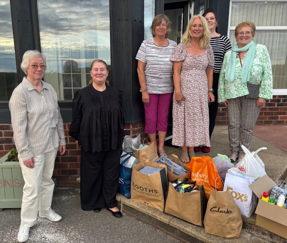In July our club hosted Tina Hibbard, CEO of FCWA (Fylde Coast Women’s Aid). Tina regularly visits our club annually to give us an updates on how things are progressing at the Refuges and to receive our annual donation of cleaning materials, used to give the women when they move on to their own homes. This year we also collected towels and bedding.