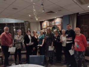 Christmas is a time for celebrating and that is just what the club did on December 15th at West Hants Tennis Club. There was a lively group of members, friends and family who enjoyed a delicious meal during which we challenged ourselves intellectually in groups with table quizzes- countries and capitals, Christmas words with their vowels missing and a series of rather perplexing riddles. After dinner we had a ‘mini panto’ where our Treasurer shone as the ‘bad gal’, followed by ‘pin the nose on the gingerbread man’ and a raffle raising £220 for club funds and Number 63, the Soroptimist hotel in London. Prizes were given to winners of each activity; greetings were shared from past members and those not able to be there and everyone left feeling full of good cheer!