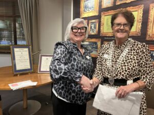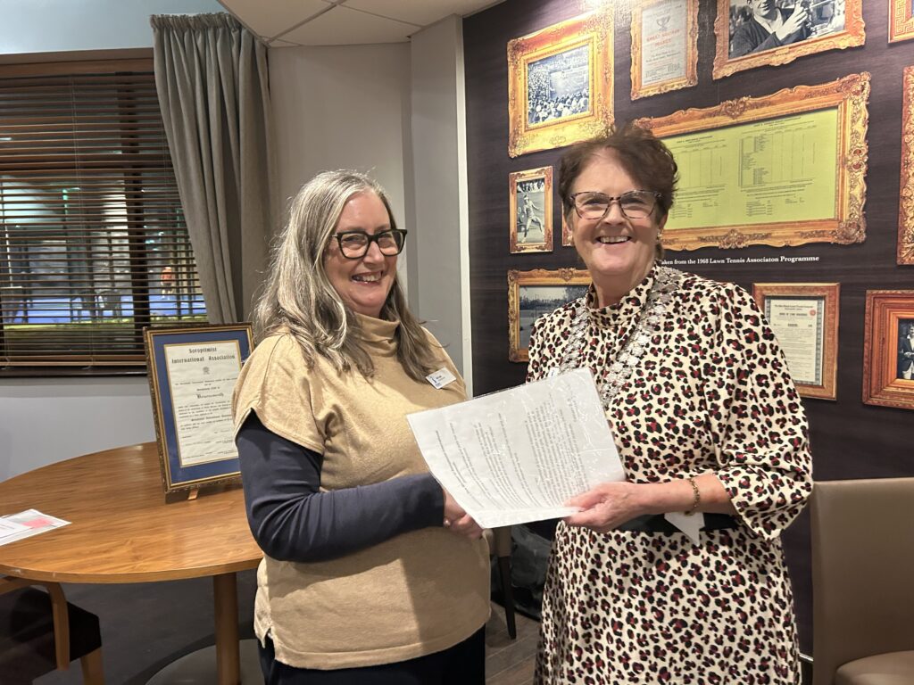 Last evening we welcomed our latest two new members to the club- Ali Cull and Sally Hallum. Both have attended a few meetings now and feel that they contribute to our organisation and we are delighted that they want to be part of it. Both have interests and skills that will be most appreciated. Acting President Kathy Moore presented them with their badges, induction packs and a very warm welcome from the whole club!