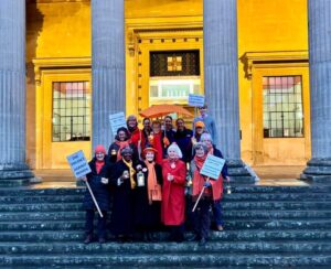 SI Bristol members met at the Victoria Rooms which was illuminated in orange for a photoshoot and were pleased to be joined by some QEH students. We marched from there to Next Link to join a large number of participants.