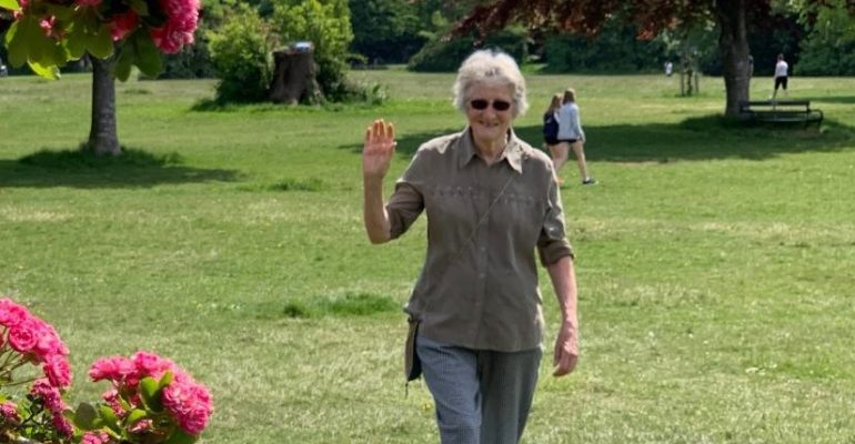 President Marion achieved her fundraising challenge on 31st March 2021! Since the beginning of May 2020, she has walked 1,390 miles, thereby exceeding her commitment to walk 100 miles per month over the Club’s centenary year. To give perspective, this mileage is farther than walking from Land’s End to John O’Groats – and back again (1,206 miles as the crow flies)! Marion’s challenge will end on 23rd April with a walk on Durdham Downs. We will, of course, observe the Rule of Six. Meet at the Water Tower on the Downs by 2:00pm for a walk – or at the nearby Café at 3:00pm. She stands in a puddle of water, one of many, and says “Thank you to everyone who has donated so far”.