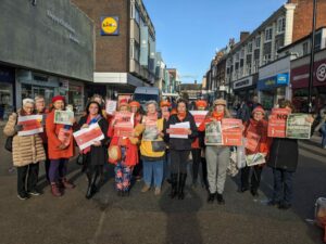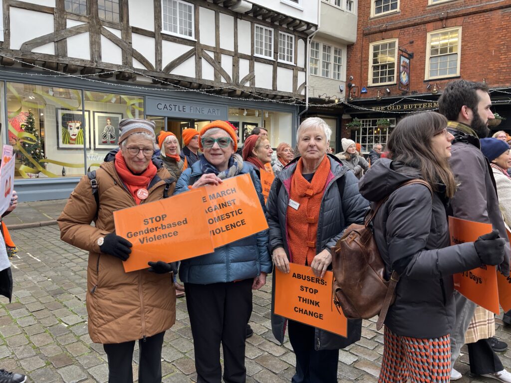 We wear orange, meet in public places to spread the message and annually make silent walks in Bromley and Canterbury.