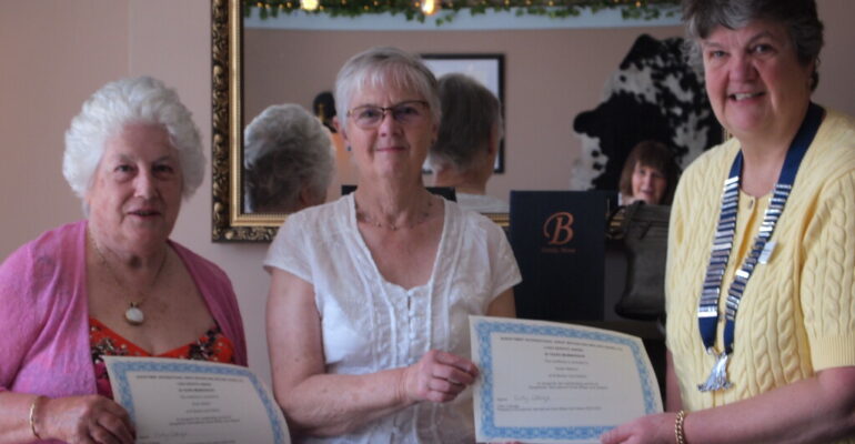 Soroptimist International Buxton and District 51 years of Sisterhood Everyone enjoyed a Sunday Lunch at Buxtons Bailey’s Bar and Grill on a sunny Saturday afternoon, followed by cakes baked by Elaine McDonald. Candle Lighting: Janet Moxon lit a candle for Federation, Deborah Ward (IPP) for International Kam Britland (SIMER Pres) lit for Region. Kam Britland shared her personal story. President Elizabeth Blagbrough presented long service awards to Sue Barber for 35 years and Sue Watson for 30 years for their incredible services.
