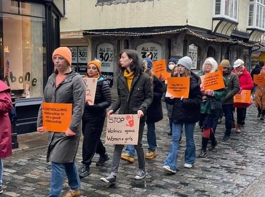 Canterbury Soroptimists held a Silent March on 27th November 2021 to raise awareness of gender based violence and the 16 Days of Activism. Marching alongside SI Canterbury members were representatives from the Rising Sun Domestic Violence and Abuse Service, Oasis Domestic Abuse Service, Thanet Soroptimists, the Canterbury Domestic Abuse Forum, the Women’s Equality Party, CCCU Sustainability Forum plus many friends and family members. Marchers wore or carried something orange, a bright optimistic colour chosen to represent a future free from male violence against women and girls. Walking in solidarity and silence through the ancient streets of Canterbury was a powerful and moving experience and drew a lot of attention from Saturday shoppers.