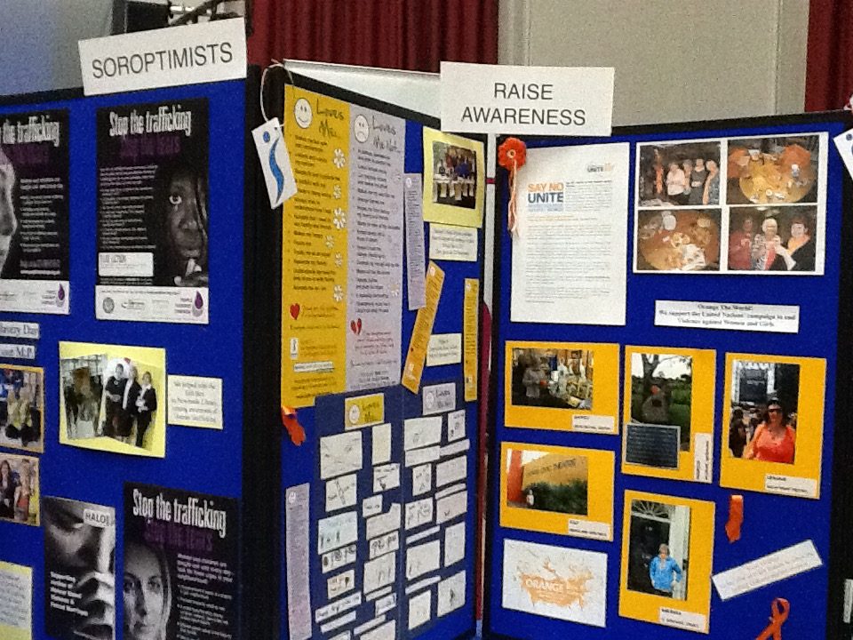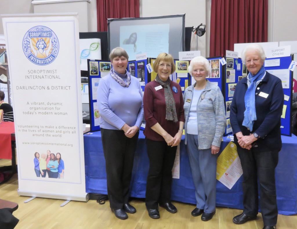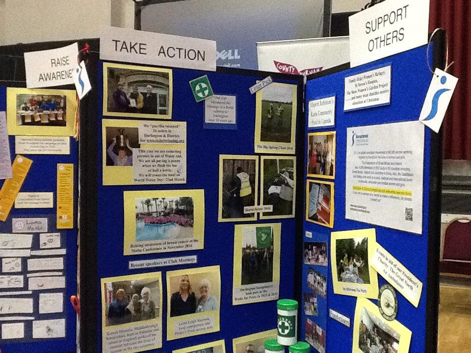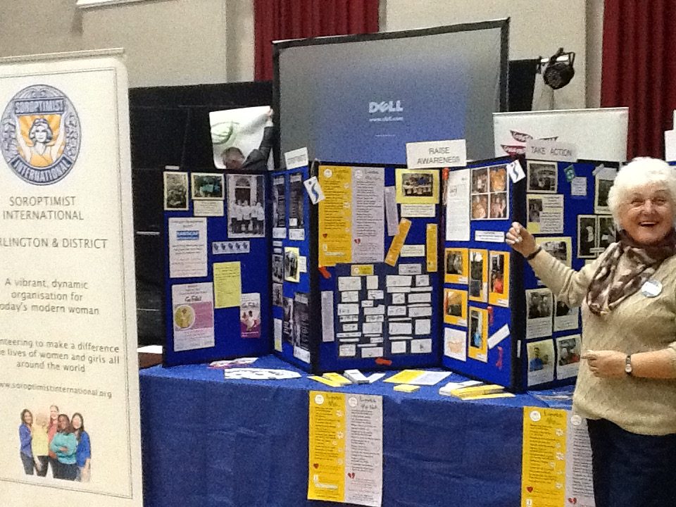 Our stand at today’s Fair illustrated the range of work undertaken by the club. We included our support for Handicap International, the Purple Teardrop Campaign and the UN campaign to end violence against women & girls. We took the opportunity to remind people about the Message in the Bottle (which we introduced to Darlington over 10 years ago) and our Loves Me, Loves Me Not materials. We also showed some of our social events and what we do with the money raised. A selection of photos showed our most recent speakers at club meetings. We introduced a lot of people to Soroptimism, gave out leaflets, bookmarks and Message in a Bottle containers. We also made some useful contacts.