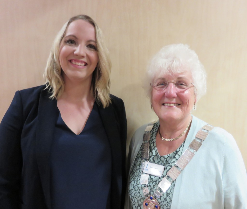 The photo shows speaker, Jennifer Ingham with President Maureen.