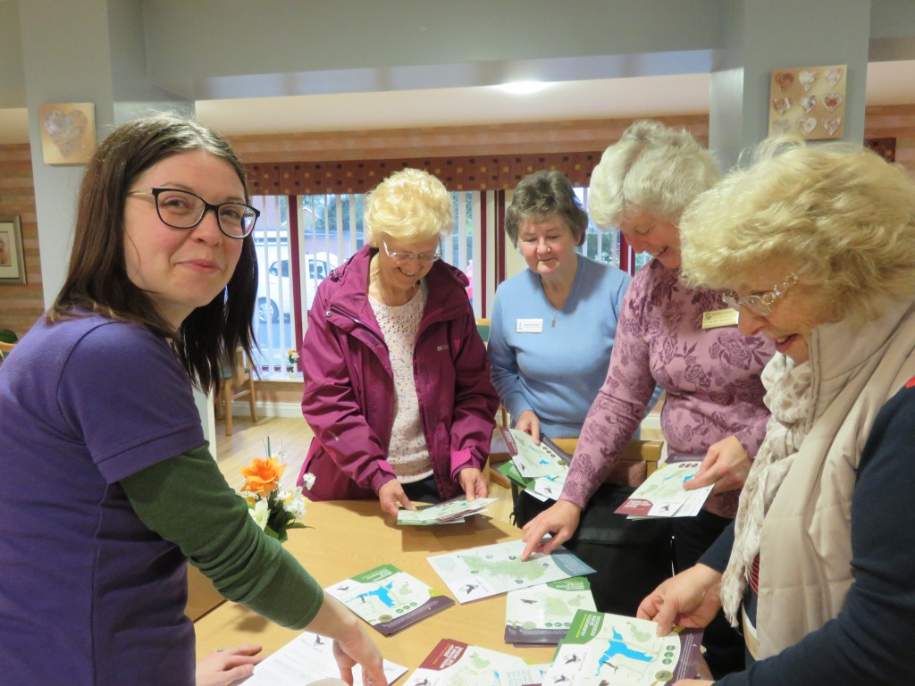 The speaker was introduced by Barbara Brown. Aimée Nicholson, Development Officer of the Bright Water Landscape Project, gave an illustrated presentation of the project and made us all much more aware of the history and wildlife of our local River Skerne than we had been. Bright Water is a Heritage Lottery Fund supported project that aims to reveal, restore and celebrate the heritage of the river’s catchment area. Aimée spoke of the Skerne’s history, and of the deserted medieval villages and the original Prince Bishop’s castle, all of which will be surveyed within the project once the development stage is over and the “delivery” begins – (Jan 2018 till the end of 2021). The ancient wetlands, which had been drained and farmed, are now changing again because of climate change and because of rising ground water (from the closed coal-mines). Aimée told us about the wide range of birds which can now be seen in the area, and about the many walks which can be made with the help of a series of illustrated cards (as seen in the photo above.) Dorothy Thomson gave the vote of thanks.