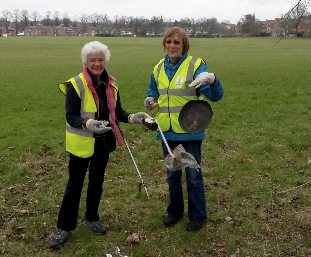 Four club members, highly visible in our yellow waistcoats, again took part in the launch of the annual event to combat litter in the area. We met in Darlington’s South Park, and, after a photograph for the press and a brief interview, we were off to pick up the leavings of the thoughtless! The usual items were found, but Sylvia won the prize for the most interesting litter when she picked up part of a copy of Of Mice and Men.