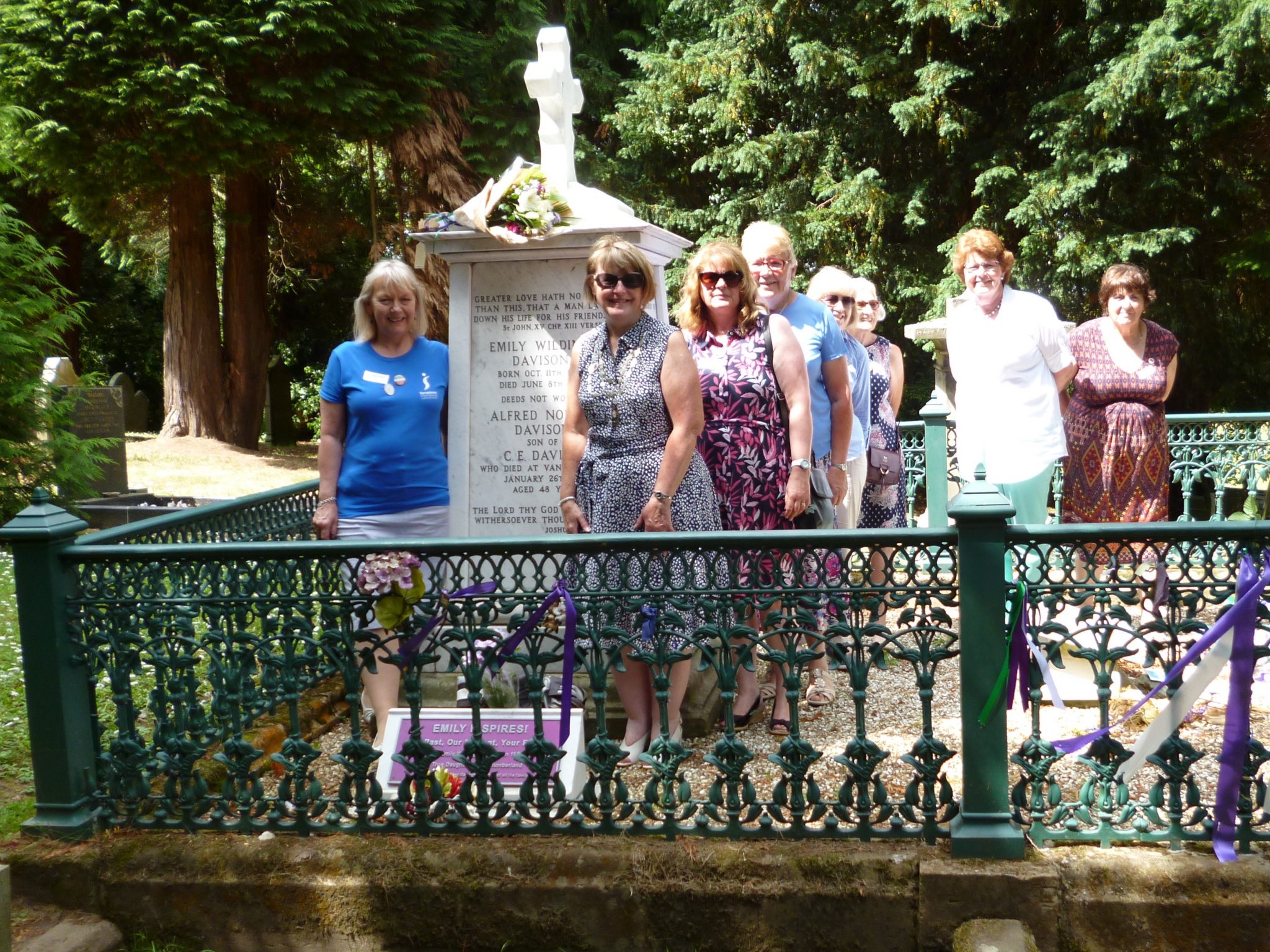 In July 2018 as part of the events to mark one hundred years since some women got the vote and 90 years since all women over 21 got the vote members of SI Durham visited Morpeth. In the cemetery in Morpeth is the grave of Emily Wilding Davison the suffragette who gave her life under the feet of the King’s horse in a public horse race in 1913 to further the cause of women’s suffrage. President Dot Hales and some club members took flowers to lie on her grabve and publicised her work and sacrifice