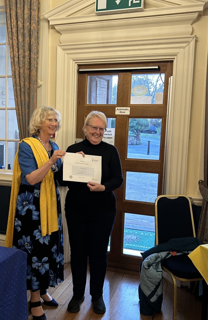 At our club meeting on Wednesday 16th April we were delighted to welcome Rosalind Crowther, from Sackville College, and presented her with a cheque for £441 as a result of the Art Club’s Mince Pie morning which happened before Christmas. We heard that sadly the Art Club was no longer going to run, having met fortnightly for over 10 years. It was the brainchild of Angela who has led it throughout the years but the time has come for it to draw to a close. Many thanks to Angela for her hard work over this time. However we were delighted to hear that the group are still going to run their very popular fundraising Mince Pie morning!!