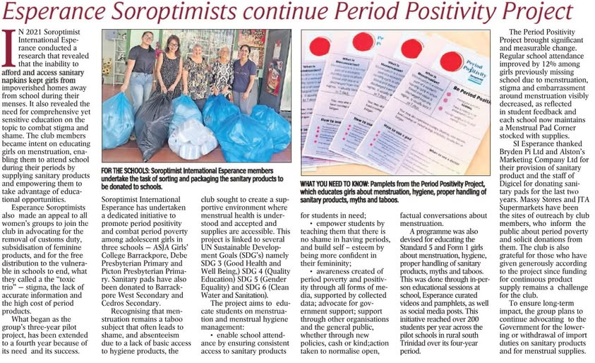 Soroptimist International Esperance continues Period Positivity Project – Trinidad and Tobago Newsday