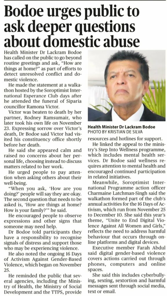 Ask “How are things at home?” to uncover conflict, says Bodoe – Trinidad Guardian