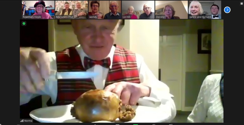 The evening was a great success with plenty of fun but also fundraising, with an amazing £1100 raised. There was the usual Address to the Haggis, The Selkirk Grace, The Immortal Memory, The Toast to the Lassies and the Reply on behalf of the Lassies. There was no communal haggis eating but the evening was rounded off with a Scottish Quiz and the singing of Scottish songs finishing with a rousing Auld Lang Syne.