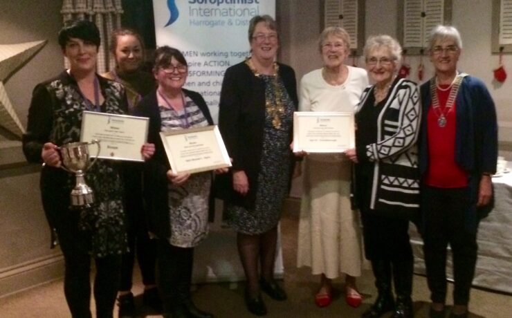 Members of Soroptimist International of Harrogate and District who live in Wetherby and a member of Welcome to Wetherby spent the morning of the 7th “December looking at and judging the charity shop windows in Wetherby. The judging criteria were Innovation, Impact and the Spirit