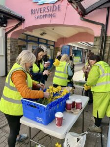 It was daffodils all the way when we celebrated International Women’s Day by picking and distributing hundreds of daffodils to local women on Saturday 8th March.