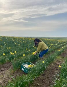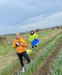 It was daffodils all the way when we celebrated International Women’s Day by picking and distributing hundreds of daffodils to local women on Saturday 8th March.