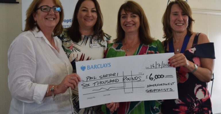 Pictured at the cheque presentation (L to R ) – Sandra Dade (Charity Manager Paul Sartori), Chair of our Events Committee Deena Irving, Toni Dorkings (Community Fundraiser Paul Sartori), Club President Julia Brady Yesterday (July 16th) saw us all enjoying our annual charity lunch when we were able to donate the massive sum of £6000 to Paul Sartori, a local hospice at home service. This is one of President Julia’s chosen charities for the year. We enjoyed delicious food, wonderful company and much fun and laughter. Entertainment came from Ian Gravell our guest speaker whose battle to walk again after a devastating car accident was inspired by the Bruce Springsteen classic “Dancing in the Dark”. Ian has written a bestselling book entitled “Loose Gravel” about the traumatic events. The book made such an impact on a BBC researcher when she read it that it led