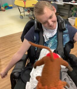 The latest story bag for Meadowside School is ‘Giraffes can’t Dance’ which introduces the reader to a large number of animals. Hand knitted versions of all of them were featured in the story bag thanks to the great patience and skill of Stella and members. The toys were especially popular with the children as they heard the story.