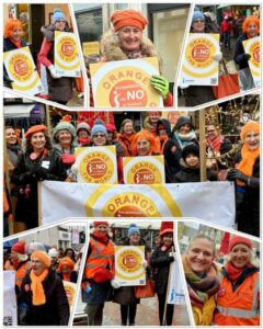 We wear orange to show our outrage that violence against women and girls still continues, but the colour orange also signifies our hope for the future. Join us next November, all are welcome.
