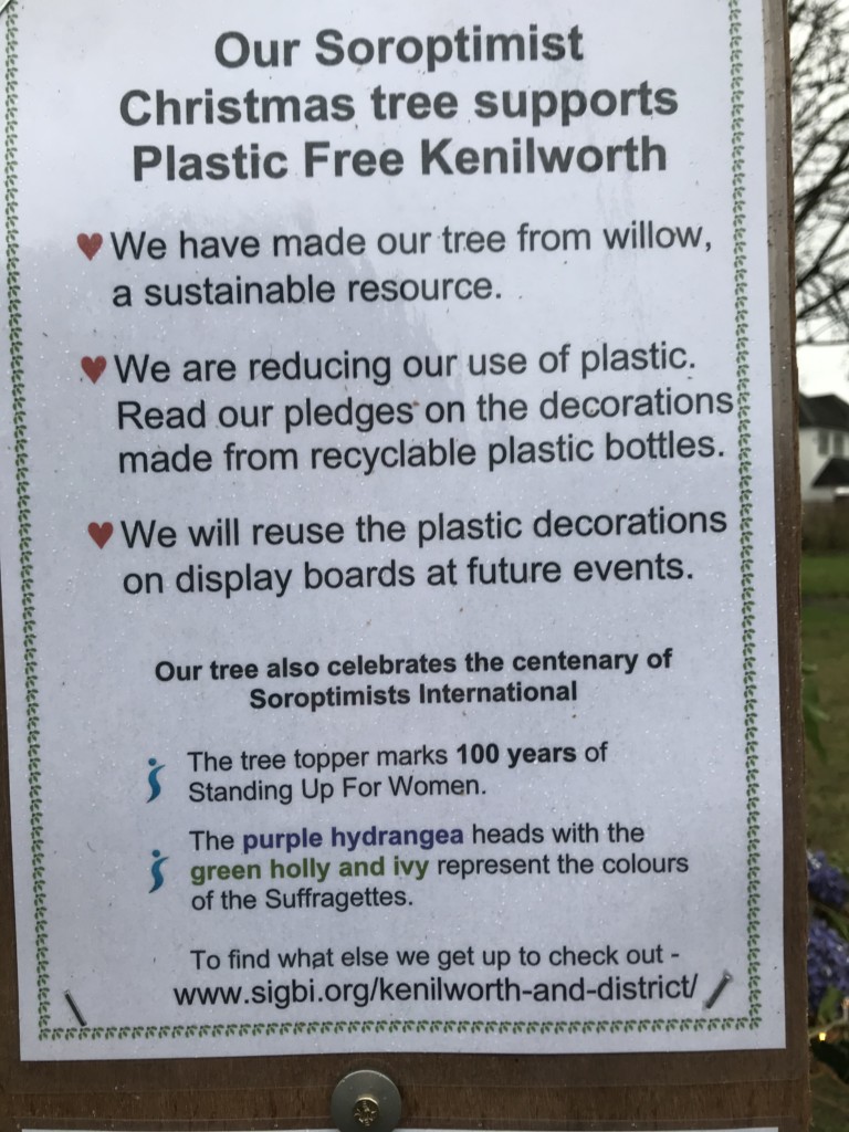 ‘We at Soroptimist International Kenilworth and District hope that you will enjoy a peaceful Christmas and a healthy New Year with increasing optimism for the future. Kindest regards from President Gill and all club members.”