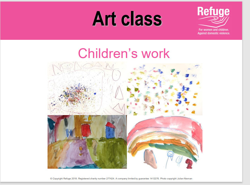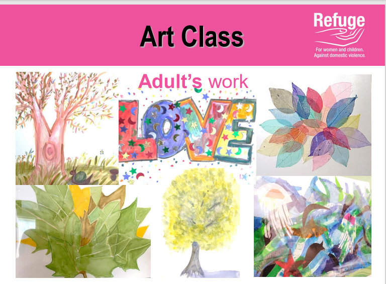 Edwina from the Art Society Leamington Spa came to see some of the fantastic results that their sponsorship has provided. Brenda the lead Artist for the art project and Julie have run classes since May 2021 for both the women and the children at one particular Refuge. It was very moving to hear just what a benefit this has been. And very exciting to hear that the Edwina is in discussion about how the project may be extended into other Refuges in Warwickshire.