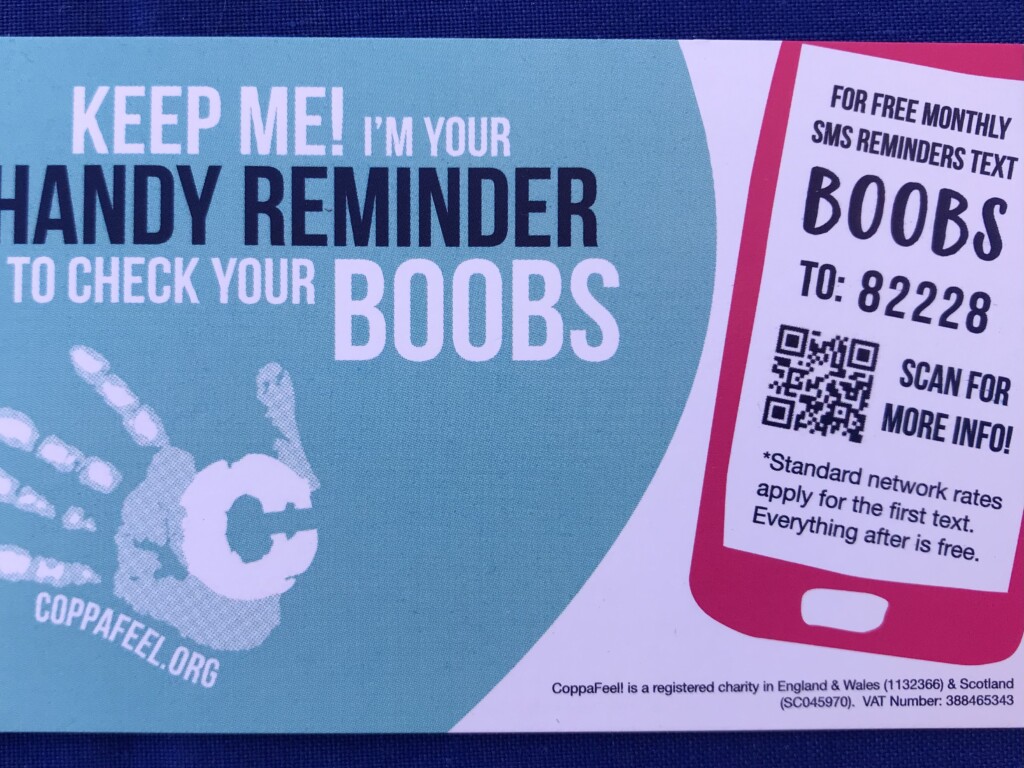 If you think you know someone who could do with a regular prompt to ‘check normal’, do get them to log onto CoppaFeel’s website. There’s loads of really useful information on it.