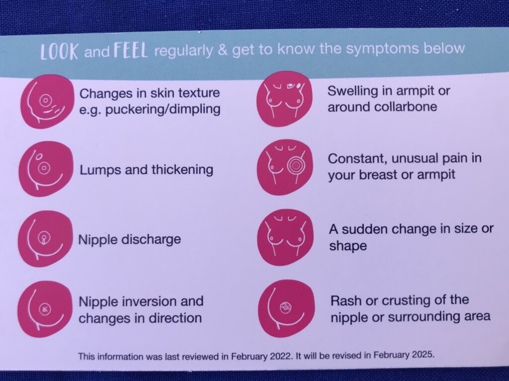 It was great to get such positive reactions from what we were doing. We gave out over 50 leaflets and encouraged people to use the QR code instead of taking a paper copy. In fact, we packed up slightly earlier than planned as we ran out of the CoppaFeel information cards! One lady, a teacher, was delighted to take away the idea of using the material for PHSE (Personal, Health, Social and Economic education) sessions in her school. Other mums and aunties, dads too, planned to get their daughters to use the monthly prompt available on the CoppaFeel website. And share it with their friends.