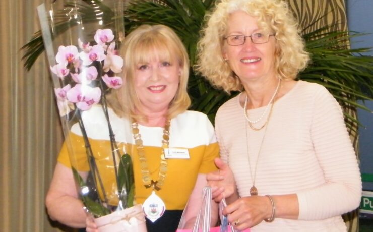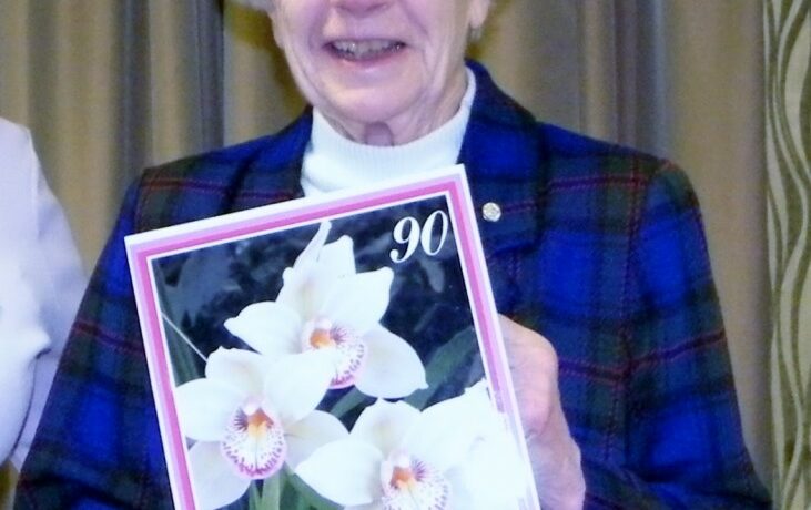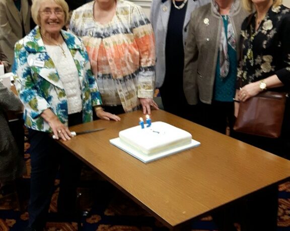 Club members have been visiting Joan for some years to help her maintain her garden. This visit was to celebrate her birthday: two of our members took her a cake and card. There were celebrations at the May club dinner as two of our members were