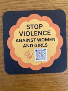 Another initiative has been the production of drink coasters that have been distributed around participating pubs and cafes. These carry a strong message about the need to work towards the prevention of violence towards women and girls. We hope these will stay in circulation well beyond our 16 day focus.
