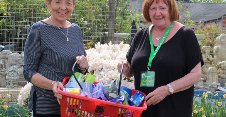Kirkcaldy Foodbank has joined the country-wide campaign to combat period poverty by distributing feminine hygiene products to clients. They asked our club if we could donate some feminine hygiene products and we brought items to our meeting in the middle of May, and a week later these were handed over to Maureen Closs, a trustee with the Foodbank. Maureen said that the Foodbank is very pleased to be given such a large number of items and that they will be very gratefully received by their clients. The collection of feminine hygiene products Some of the products being handed over to Maureen Closs from Kirkcaldy Foodbank by Avril Eardley, Programme Action Officer