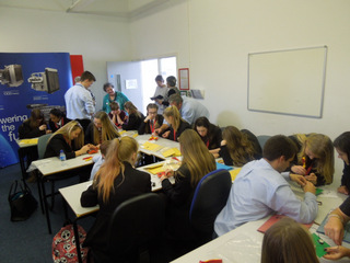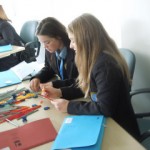 Carrying their folder of information and wearing colour coded lanyards for their groups, the girls attended 3 of the 5 workshops each. Chris and Maureen have been taking the lead on this annual event and this year, I was able to help in a small way with collating information into folders. The organisation necessary for the day to go smoothly was staggering and some group changes had to be made at 9pm the night before as 5 more girls were booked in at the last minute! The workshops were about fun, working in teams and problem solving and all the girls joined in with enthusiasm.