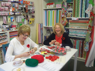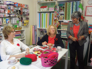 Today was the launch of the Soroptimist Lichfield knitted poppy campaign that has been running for a few years now!  The Sewing Shop in Tamworth Street buzzed from 10am till 2.30pm as cakes, coffee and conversation led to a massive £430 being raised!!  President Pat Wain was delighted with the day as Local Organiser, David Haynes joined her for refreshments and chat.  Once again he reminded us that we are the single largest donation in the city and our fundraising is much appreciated!  Also attending was Bev Billings’ brother Ian, as it was Bev’s idea to have the partnership with the Sewing Shop and knitted so many poppies and baked so many cakes and we miss her still.