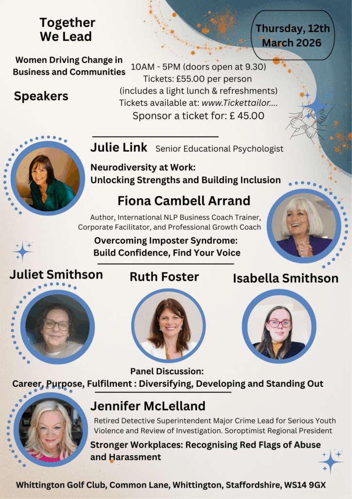 business and community life. With five inspiring speakers and an interactive panel, the day will offer practical tools, fresh insights, and the chance to shape change together.