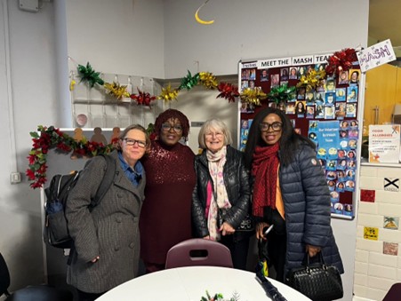 On Tuesday 9th December, members of Soroptimist International Manchester attended an End of Year Gathering at the Manchester Action on Street Health (MASH) premises in Manchester. Supporters and Friends of MASH were invited for an informal gathering over a buffet lunch with hot drinks and mince pies. MASH have had a challenging year. A damaged roof meant closure of their much loved and well-used drop-in centre until funds could be raised for repairs. This is a well-used space that the MASH users describe as a “lifeline”. The damaged and leaking roof has now been successfully repaired and the gathering was an opportunity to celebrate its re-opening and future plans.