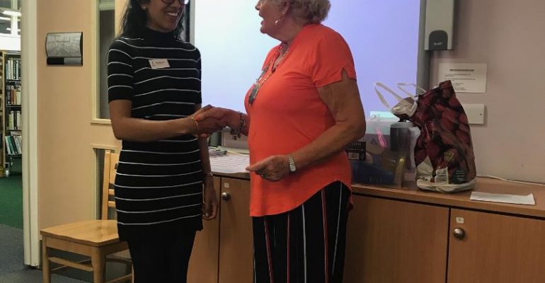 he speaker at our October meeting was Elizabeth Muir from Medical Detection Dogs. The charity was established in 2008 and is at the forefront of research into the diagnosis of cancer and in helping people with life-threatening diseases. Bio-Detection Dogs are able to find the odour of diseases, such as cancer, in samples of urine and breath. Medical Alert Assistance Dogs detect changes in an individual’s personal odour and alert them or a carer to an impending event. The dogs receive the highest standards of care – living in the homes of staff or volunteers where they are loved and cared for as part of the family. Hilaria gave the vote of thanks and presented a cheque; the charity receives no government funding and we were please to be able to give a donation towards their work.