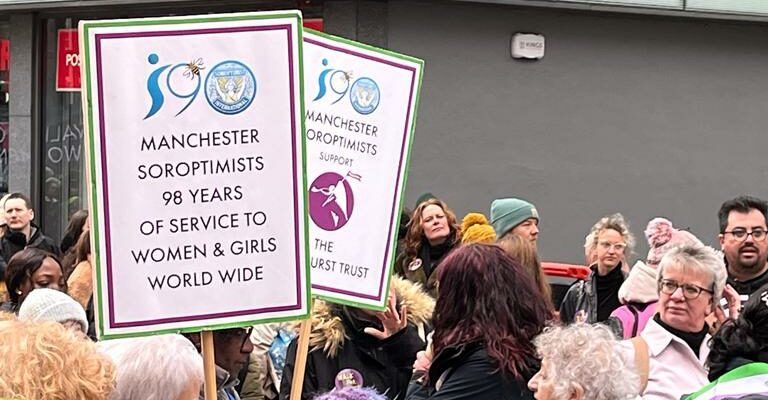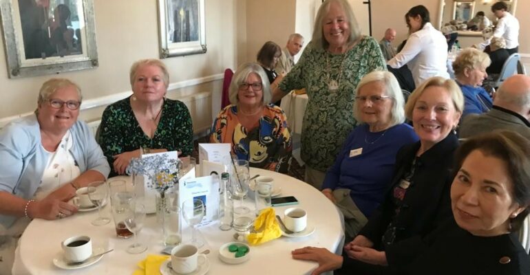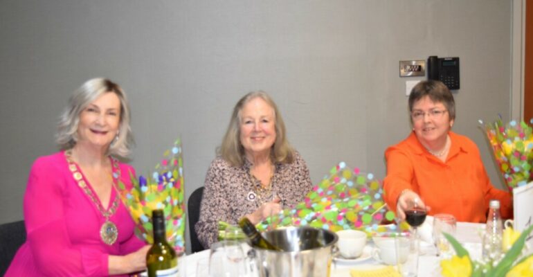 President Sue welcomed over 70 members, friends and guests to celebrate the 98th anniversary of the club’s inaugural meeting. Eight clubs from the South Lancashire region – Ashton-under-Lyne, Bolton, Leigh & District, Liverpool, Southport, St Helens, Stockport & District, and Wigan – were represented. The Manchester Bee was the theme for President Sue’s traditional toast to the City and Ports of Manchester. The High Sheriff of Greater Manchester, Mary-Liz Walker, replied on behalf of the City and Ports, referring to all the work carried out by our club. Barbara Blaber, Act4Africa trustee, proposed the toast to Soroptimist International and Pamela Wright, President of Soroptimist International of South Lancashire, replied reminding us to Rise Up and Roar – her theme for the year. The Guest speaker was Karen Humphreys, former head of the Junior Royal Northern College of Music, who spoke about her
