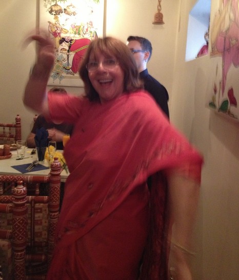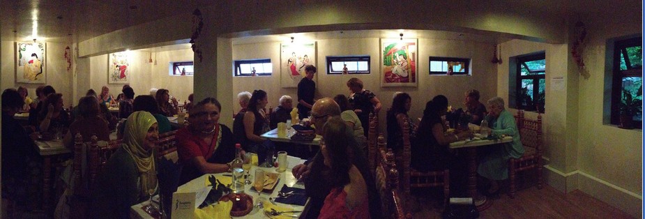 Last night, President Geraldine hosted an Indian Evening at the Dosa Houze Restaurant in Middlesbrough for a little over 30 people. She welcomed everyone with a flower stem; and inside the pretty venue we were also offered Indian bangles and halva sweets in-line with the theme of the evening. Soroptimists had travelled from SI Stockton, Darlington, Penrith, Harrogate, Wakefield, Hallamshire and Tynemouth and Whitley Bay clubs; and we were pleased to welcome assorted other guests.