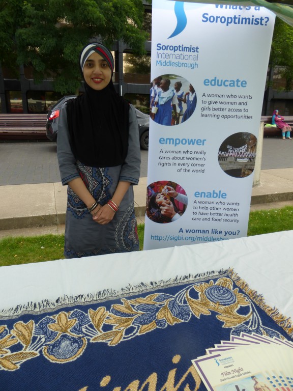 Members of SI Middlesbrough attended the Middlesbrough Town Meal on 10 September to  promote Soroptimist International.  Members enjoyed the day.  Image shows President Uzma Kazmi.