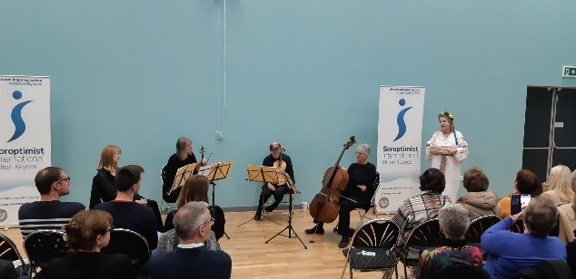But we wanted to help out more and so the Music event on 8 October provided us with the means to raise more vital funds for both these much needed issues. We invited some of theUkrainian mums and their children and held a raffle and also auctioned a quilt. We must thank the couple who made a very generous offer for the quilt we auctioned on the night. As a result. we raised £600 which wil be split between Soroptimist International Krakow and their work with Ukraine refugees in Poland, the Ukrainian families living here in Milton Keynes and the Winter Night Shelter. Thank you everyone who came and helped raise these funds.