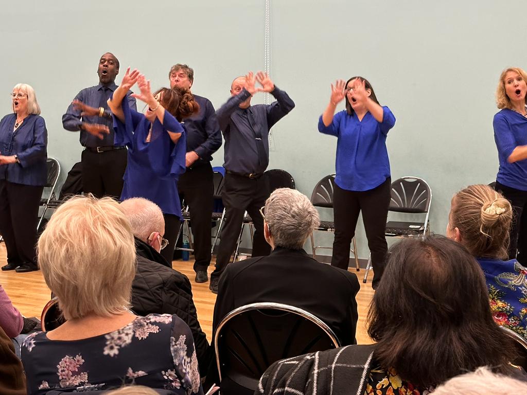 This year we were delighted to welcome the Heart and Music Choir who performed a varied and upbeat programme of songs to keep your toes tapping and putting you in a very good mood for the rest of the evening. We had songs from Ruby Tuesday, I won’t send you Roses to Spirit of the Earth and Climb every mountain. The singers really sung with such joy and enthusiam you could see the audience all smiling.