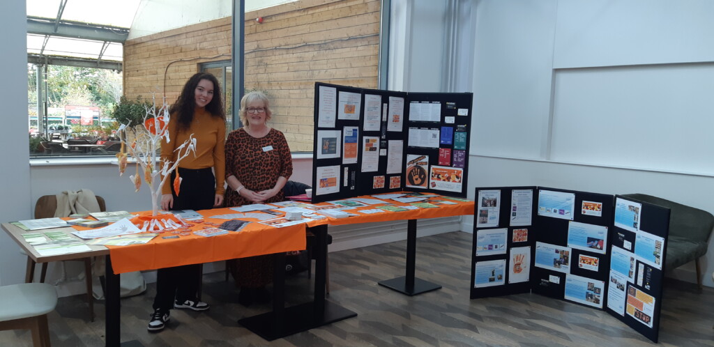 On the last day of October, we held our first Orange Café at Dobbie’s Garden Centre in Fenny Stratford. Thank you, Dobbie’s, for being so welcoming and helping us set up in the café. We were allowed to put our leaflets on tables which included our own soroptimist leaflet as well as our Helps at Hand bookmarks. And we have been allowed to put up on the community notice board our orange the world and white ribbon posters. We are at Dobbie’s next on Tuesday 28 November between 10am and 2pm.