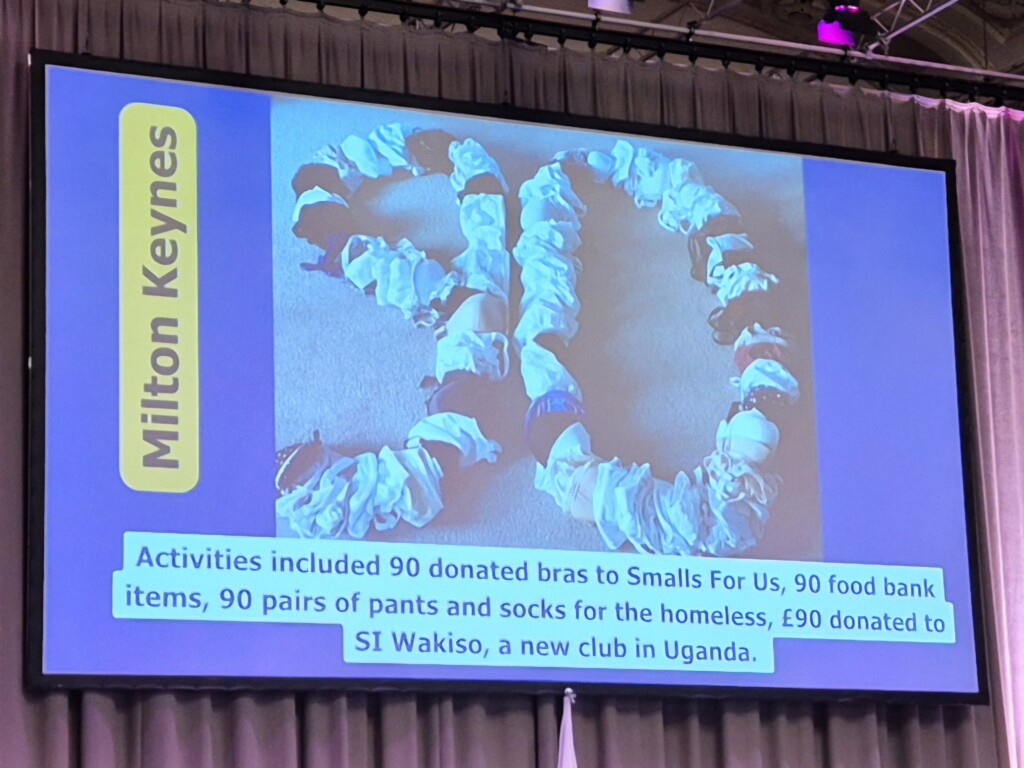 What a way to kickstart November off, but with a jolly good SIGBI Conference in Edinburgh. President Ruth Healey set clubs the “90 Challenge” to celebrate our Federations 90th birthday and our projects got mentioned on the big screen and were included in the regional booklet. You can see Lynne and myself standing next to the banner illustrating what the London and Chiltern Region contributed. It was inspiring to see the variety and number of clubs who had found many different ways to celebrate and help others, one club even came up with the idea of trying out 90 different cocktails. But we did learn from other clubs projects and have shared one relating to violence against women to one of our charities it can help.